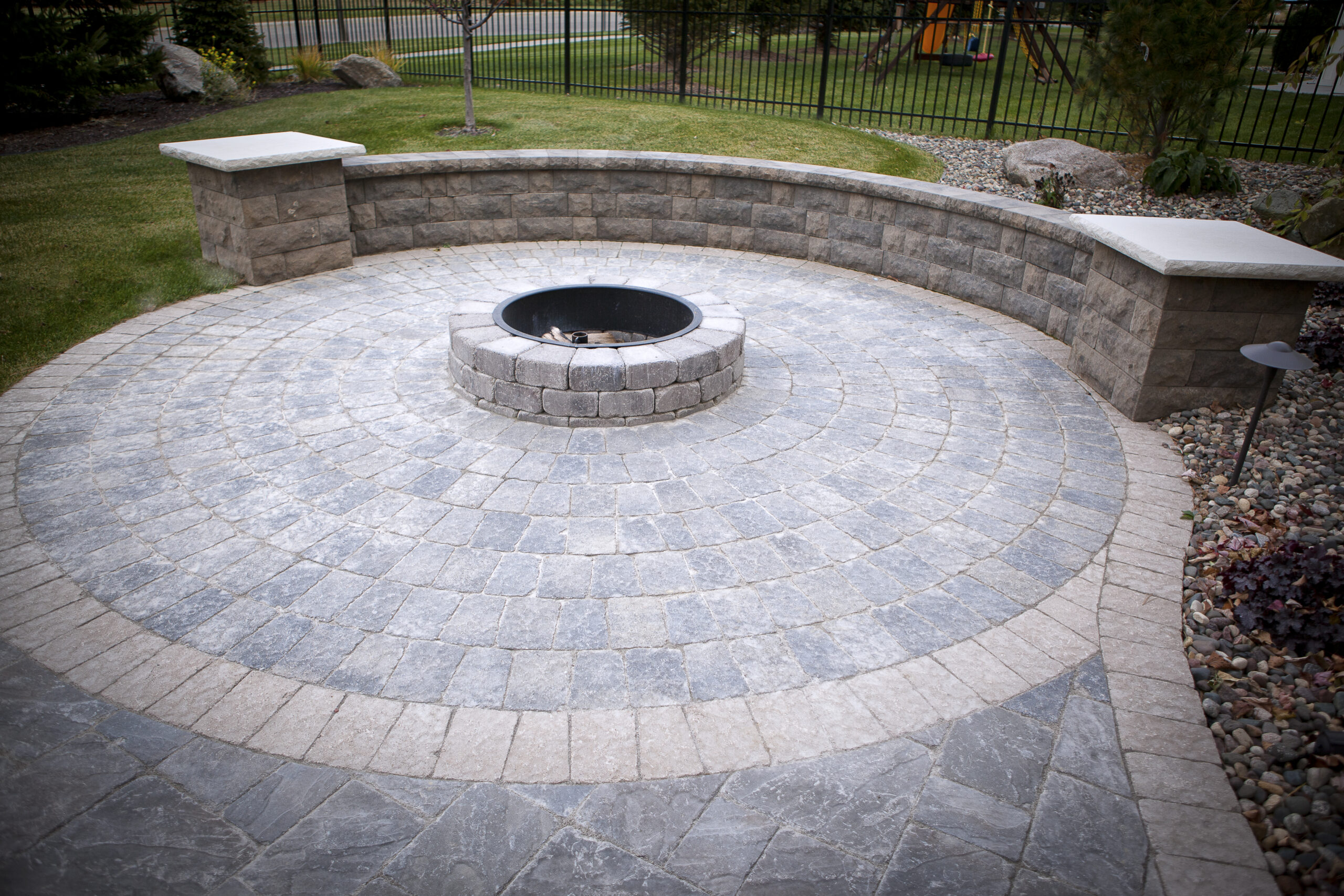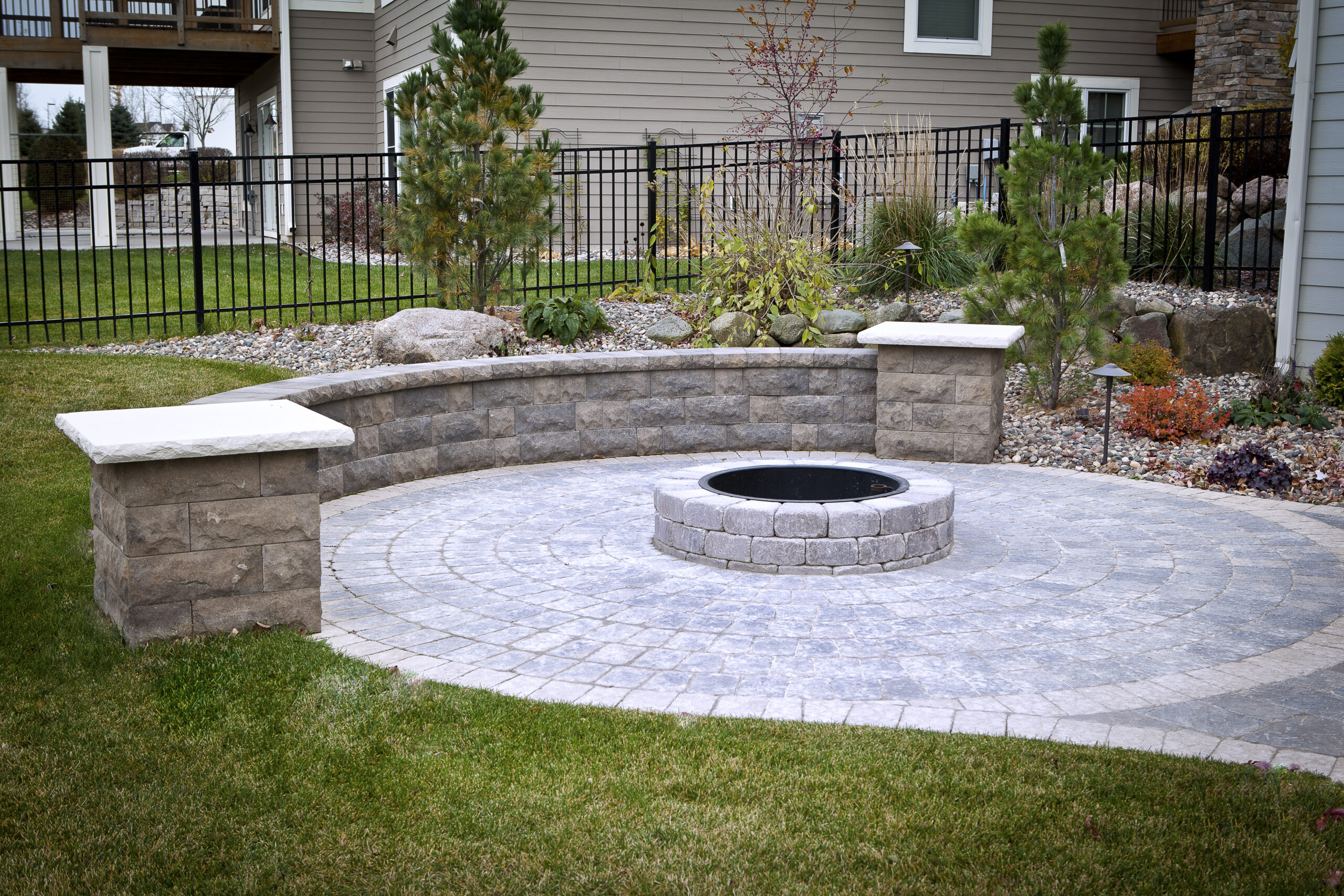 Paver Patio with Firepit & Landscape Lighting Project