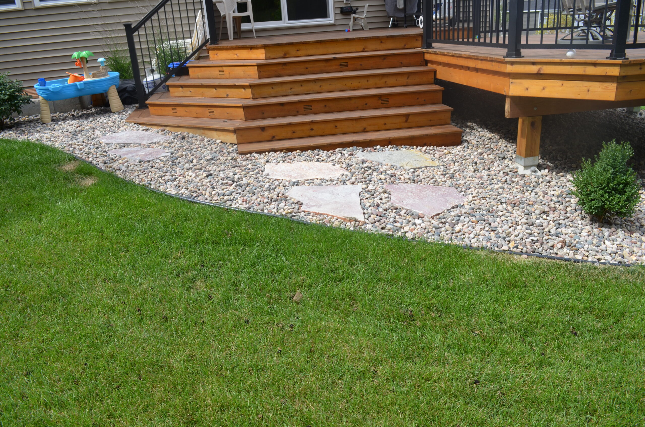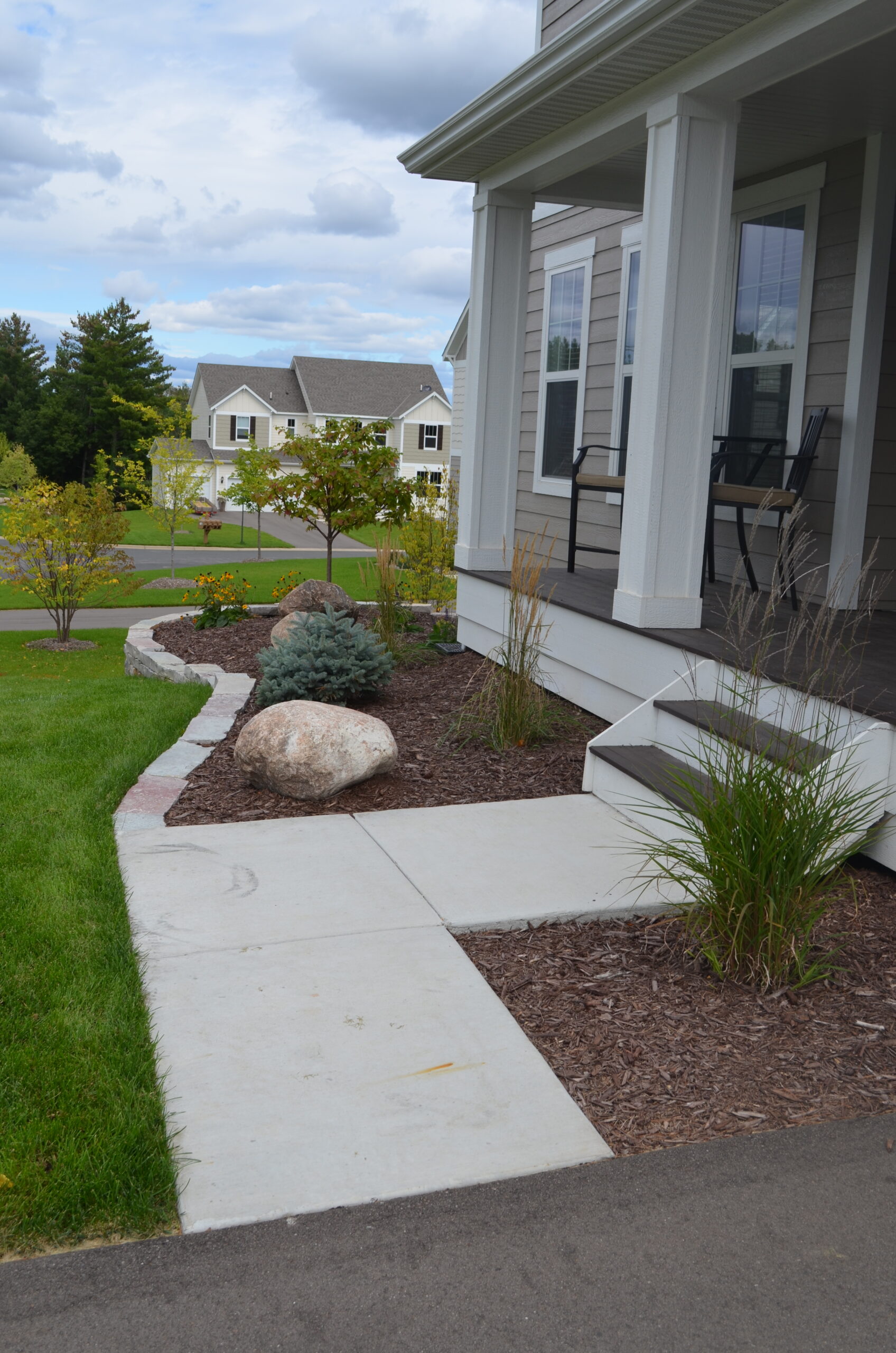 Project Overview: The customer came to us looking to upgrade their current landscaping shortly after the home was built. Our landscape team removed the river rock border next to the house and portions of the lawn. A Chilton natural wall was installed with mulch and plantings to complement the appearance of the front of the home and the porch.