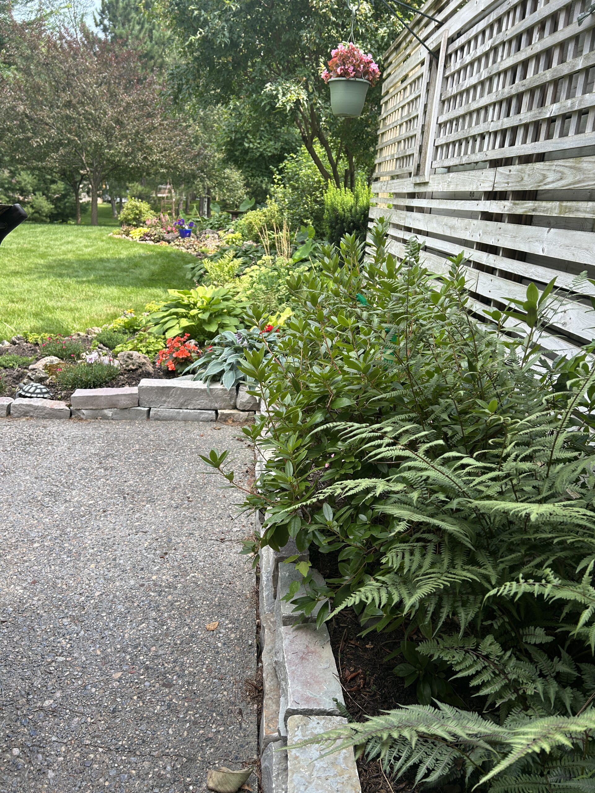 Project Overview: Our customer came to us with beautiful softscape gardens in her yard. We removed the timber borders and installed Chilton natural wall stones. This gives the customers’ yard a natural touch to the softscape gardens. Our landscaping team added shrubs and perennials throughout the gardens.