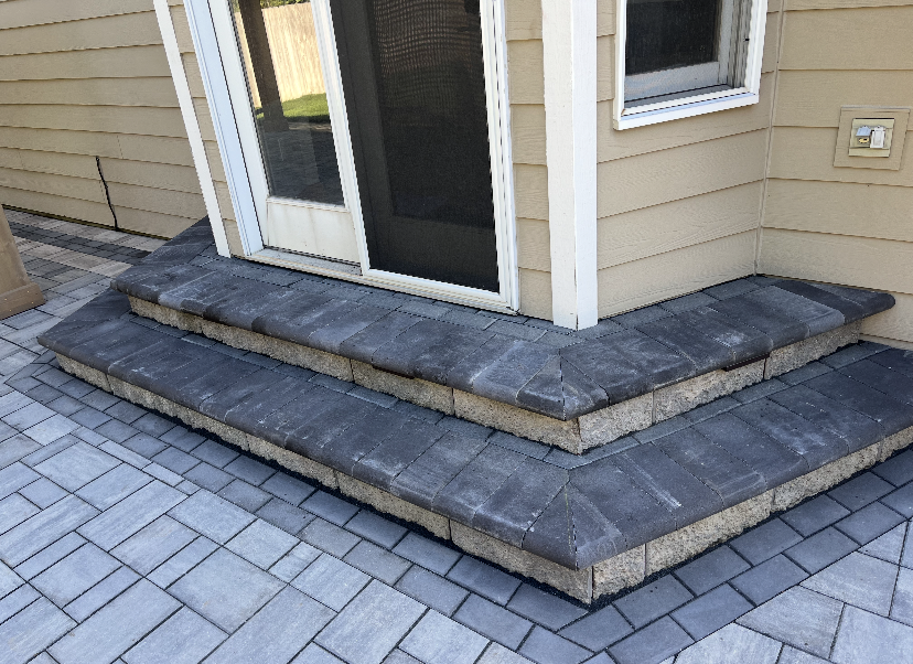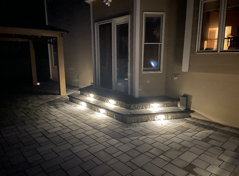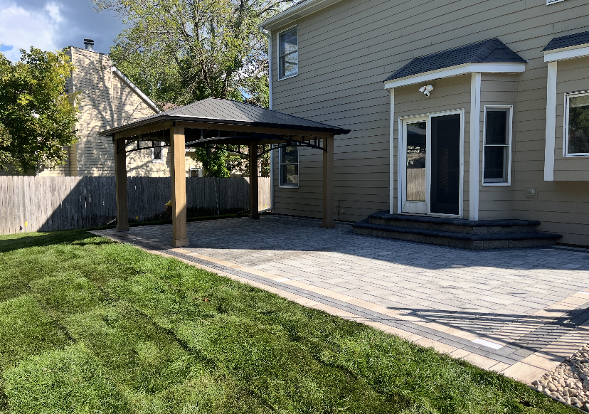 Project: Jason came to us looking to replace his existing paver patio. He wasn’t happy with his current patio and was looking to professionally replace it. Our team installed paver steps with landscape lighting. The paver steps lead down to the paver patio with accent borders. Paver lights were installed on the perimeter of the paver patio. The paver lights are an excellent choice for landscape lighting when using the patio at night. Our landscape team installed the pergola that the customer purchased on their own.